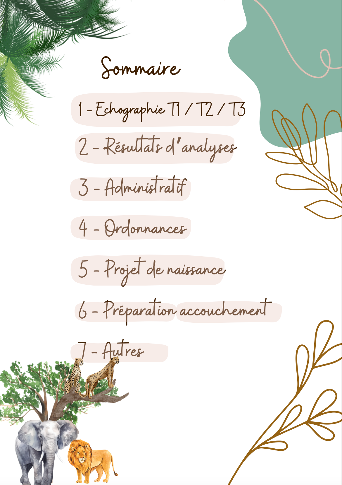 11 pages pour organiser votre classeur de grossesse et classer tous vos documents (échographies, résultats d'analyses, ordonnances, projet de naissance, préparation à l'accouchement, administratif...). Comprends un calendrier de grossesse.